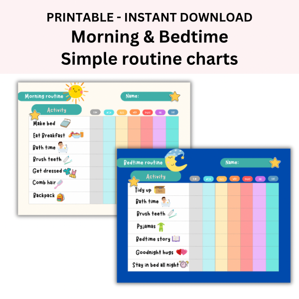 Morning & Bedtime routine charts - Printable for toddlers